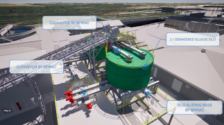 ECONET VMT entrusted SPIRAC to install a round Sliding Frame Silo for Sludge storage. The required volume for the new sludge Sliding Frame silo is 120m3 and the outloading capacity is 80m3/h. The diameter of the silo is 3.82m and its total height is approx. 15m. The sludge dry substance content is between 18% and 24%. The silo is insulated and includes heat tracing to keep the sludge within the silo from freezing during winter.