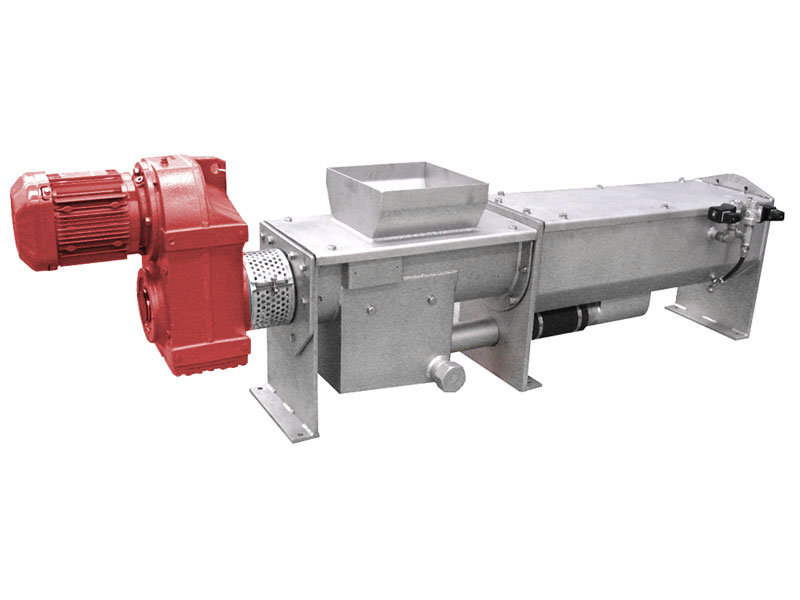 Überschüssiges Wasser wird in der Verdichtungs- und Entwässerungszone extrahiert. Während das Pressrohr sich mit verdichtetem und entwässertem Rechengut befüllt, verbessert der ansteigende Druck den Entwässerungsprozess. Das am Ende des Pressrohres entladene Produkt fällt typischerweise in Form kompakter Pfropfen in einen Abfallbehälter.